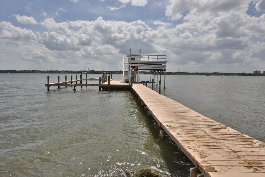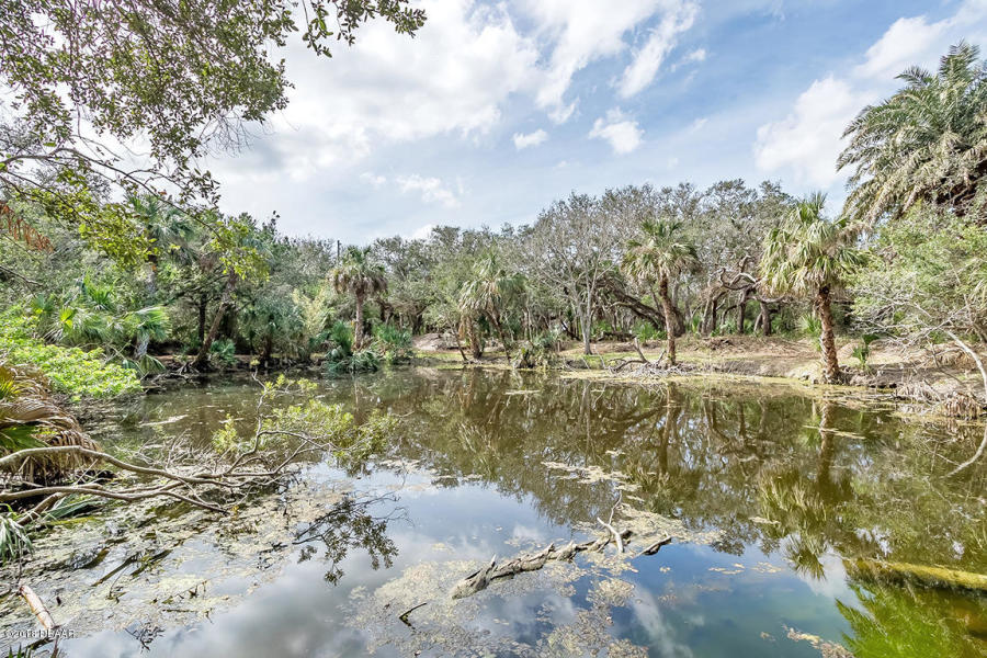 This nearly 5-acre waterfront estate is arguably the most desirable residential parcel in this part of Florida, tucked just inside the inlet offering spectacular panoramic views and direct navigability to the Atlantic Ocean. This is located on a prestigious waterfront stretch of just 11 residential-acreage estate parcels along South Peninsula Dr. here in south Ponce Inlet with this particular piece being the most southerly and the largest, featuring a rare private-deeded canal in addition to the incredible 183′ of open water frontage. A large, detached 4-car garage shares the architecture and is situated adjacent to the private boat ramp and private canal with mooring basin. The natural live oak landscape with tropical flora and fauna sits directly beneath the beam of the historic Ponce Inlet Lighthouse. A very rare and beautiful natural freshwater pond sits right in the middle of the 4 acres creating a picturesque old Florida setting just steps to the beach and inlet parks. Although this property has frontage on prestigious S. Peninsula Drive, the current entrance is off of obscure and private Sailfish Dr. providing direct access to lovely, shaded, shell-covered, sandy roads that lead to local watering holes, working charter docks, and the inlet’s jetty and beaches. Listed by Adams, Cameron & Co., Realtors