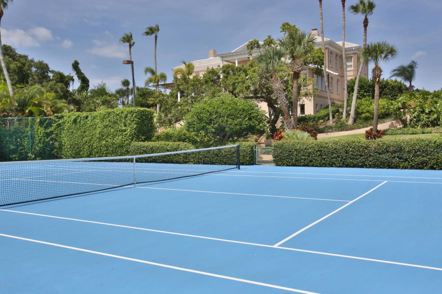 This remarkable riverfront estate is like nothing else in our area, with a grand 1924-built mansion sitting on one of the highest elevations on the peninsula, offering commanding views up and down the Halifax River. The grounds here are simply stunning, and a sprawling veranda catches river breezes suspended above the tennis court, resort-style pool with cabana, and deep water dock able to accommodate a sizable yacht. The home is a subtle combination of rich hardwood trim, floors, and detail from a bygone era that has been coupled with appropriately updated features, fixtures, and interior appointments that represent some of today’s finest offerings. The room count here includes 4 bedrooms, 4 baths and 3 half-baths with nearly 9000 sq. ft. As you enter the home you will immediately notice that the views are simply incomparable to anything in this area, and the room layout has been configured to take advantage of the vistas and offer the ideal space to entertain and relax. A main riverfront living room with fireplace is bordered by a spectacular waterfront bar area and stunning dining room perched above the treetops, offering amazing views of the water and the gardens. A second formal dining room overlooks the water and opens to the spectacular waterfront, custom, island kitchen that was thoughtfully designed for day-to-day living or cater to a crowd with top-of-the-line, commercial-grade appliances, handcrafted cabinetry, and a lovely granite selection. The waterfront master suite is fantastic and spans the entire length of the home with a beautiful living room incorporated into the private space as well as an over-the-top luxury bath and spectacular walk-in closets and dressing areas. A home gym is self-contained on the ground level. The downstairs game room and bar can entertain a large group of friends inside, or step out to the cabana with kitchen, tiki bar, covered lanai, and a fantastic pool area that is both waterfront and courtside. The tennis court has recently been resurfaced and has commercial-grade lighting in place. The dock features a large slip as well as two covered slips beneath a large observation deck. Excellent proximity to the inlet for quick blue water access. This home has a rich history and is presented here for the next owner in “Turn Key” condition. It is an absolute standout within this class of property offerings and has been priced to sell by a market-savvy seller. Listed by Adams Cameron & Co.