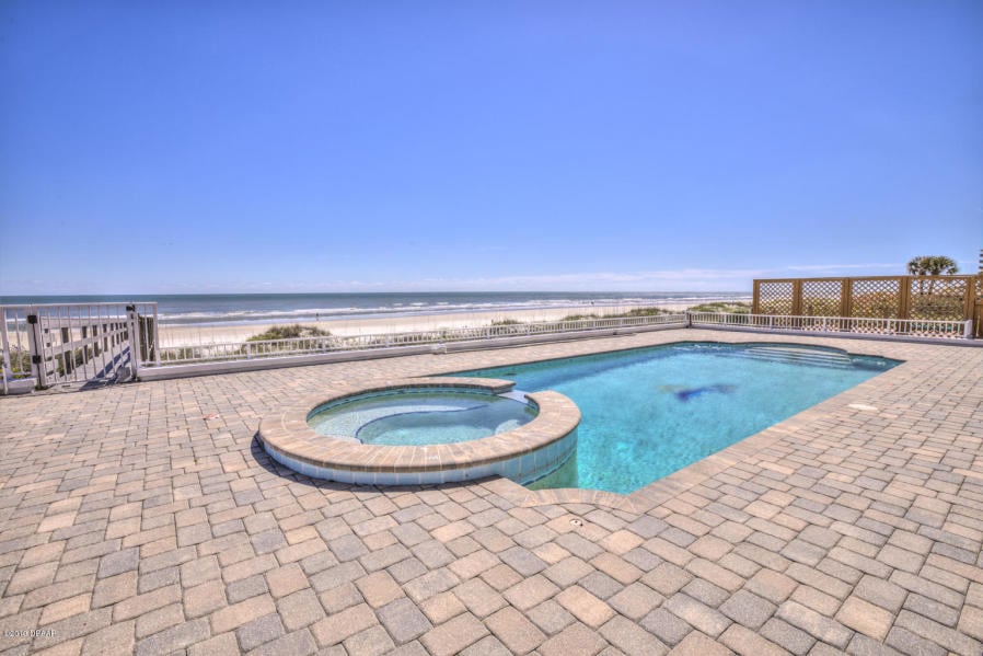 SPECTACULAR DIRECT OCEANFRONT CUSTOM MASTERPIECE BUILT LIKE A BUNKER! This absolutely amazing 3-story home with an elevator built in 2008 has nearly 4800 sq. ft. of luxurious living area, exquisite artistic craftsmanship, upscale finishes & endless attention to detail are unmatched!! Built on huge concrete pilings with post-tension construction & poured concrete extra-thick walls on all levels!! Private beach walkover to pristine ”no-drive beach‘!! Top-quality high impact windows, storm shutters & designer window treatments throughout. Enter through the grand formal entryway & your eyes focus on the gorgeous wave design mosaic floor pattern extending the length of the home!! That is just the beginning!! There are endless jaw-dropping features in every room of this home!! Relax on the rooftop terrace & enjoy panoramic ocean, river & lighthouse views!! This awesome home boasts three large bedrooms, four amazing bathrooms, an exercise/bonus room, sauna, butler’s pantry & washer/dryer for guests all on the main level. Work your to the second floor to the expansive wall of windows accentuating the incredible views & azure Atlantic Ocean!! The second floor encompasses the marvelous great room with gas fireplace, gourmet kitchen, media room, custom half bath & butler’s pantry. The elegant private 3rd floor master quarters has an oceanfront balcony, gas fireplace, enormous walk-in closet & dazzling views!! The extravagant master bath has a large jetted tub, a huge stall shower, and amazing ocean views! This home has so many incredible features that must be seen to be appreciated!! Furnishings Negotiable! Listed by Team Caron Realty Inc